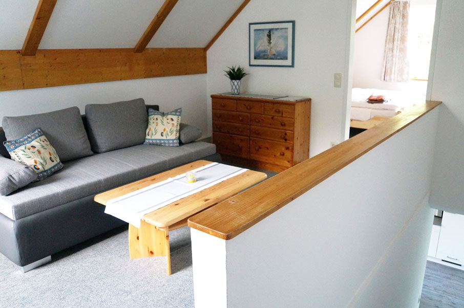 In Ausnahmefällen kann im Wohnzimmer das Sofa als Bettcouch genutzt werden.